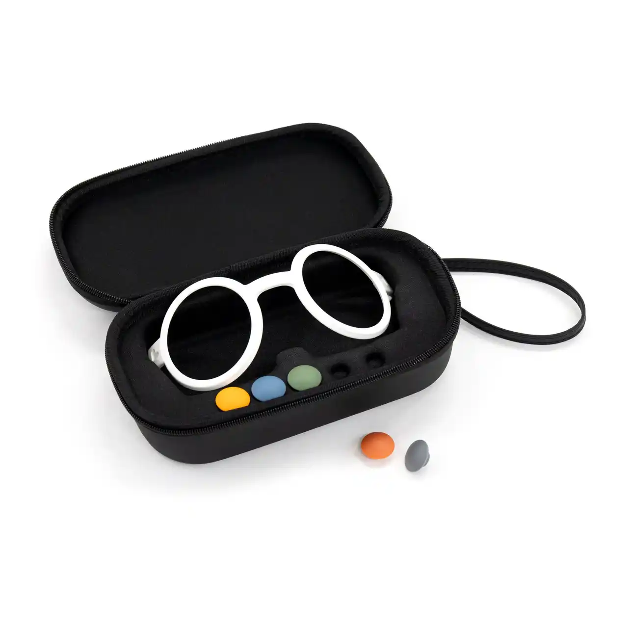 お出かけ先でも『LOVOT』のおしゃれを楽しみたい、そんな願いを叶える専用ケース。『LOVOT』のめがね1つと、らぼはな5つをまとめて持ち運べる便利なアイテムです。シンプルでおしゃれなケースが、大切なアクセサリーを衝撃や汚れから守ります。 |