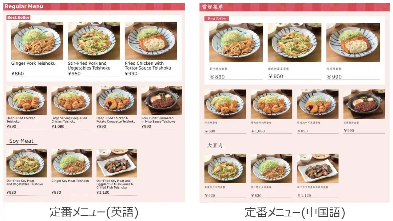 近年のインバウンド需要の拡大に伴い、訪日外国人のお客様が言語の壁をできるだけ無くし、より店舗を利用しやすい環境を整えるため、このたび「やよい軒」では、英語と中国語(簡体字)での商品購入方法やメニューをスマートフォンに表示できる取り組みを始めました。 | ||||||||