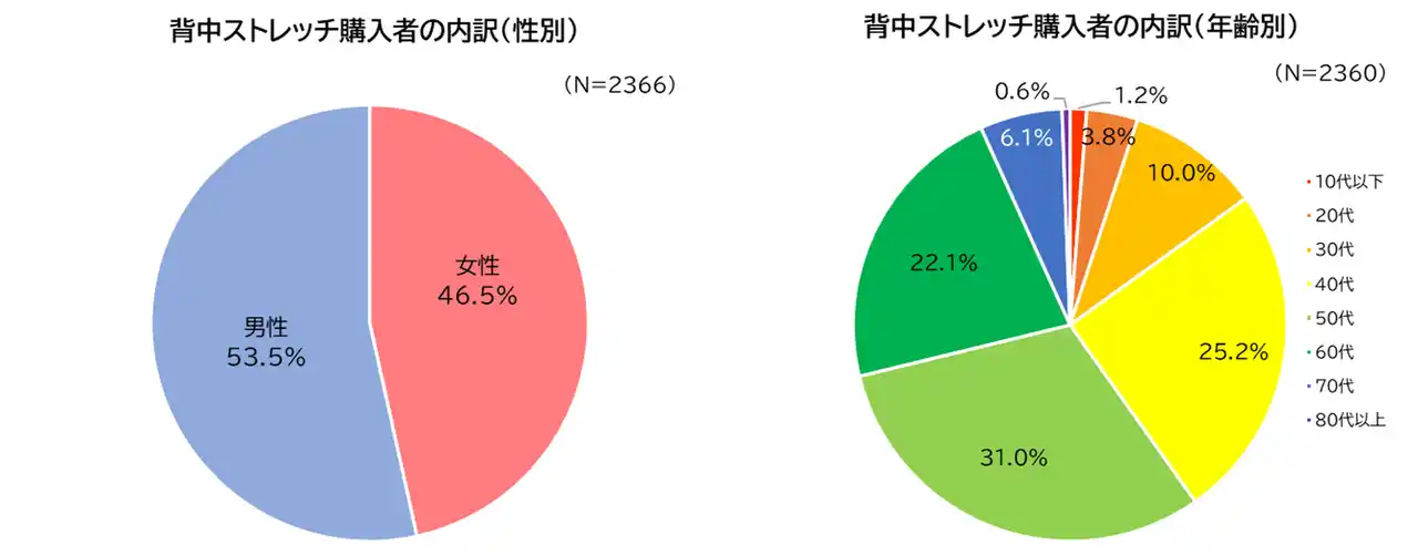 ※左図:2021年10月から2025年9月末の期間に背中ストレッチを購入したとアンケートに回答した2366名を集計(未回答者81名を除く) | ||||||||||||
