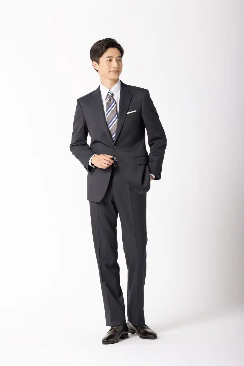 使いやすいネイビーのスーツにグレーのネクタイを合わせることで、モダンで知的な印象。 |