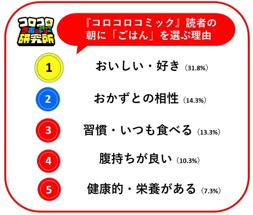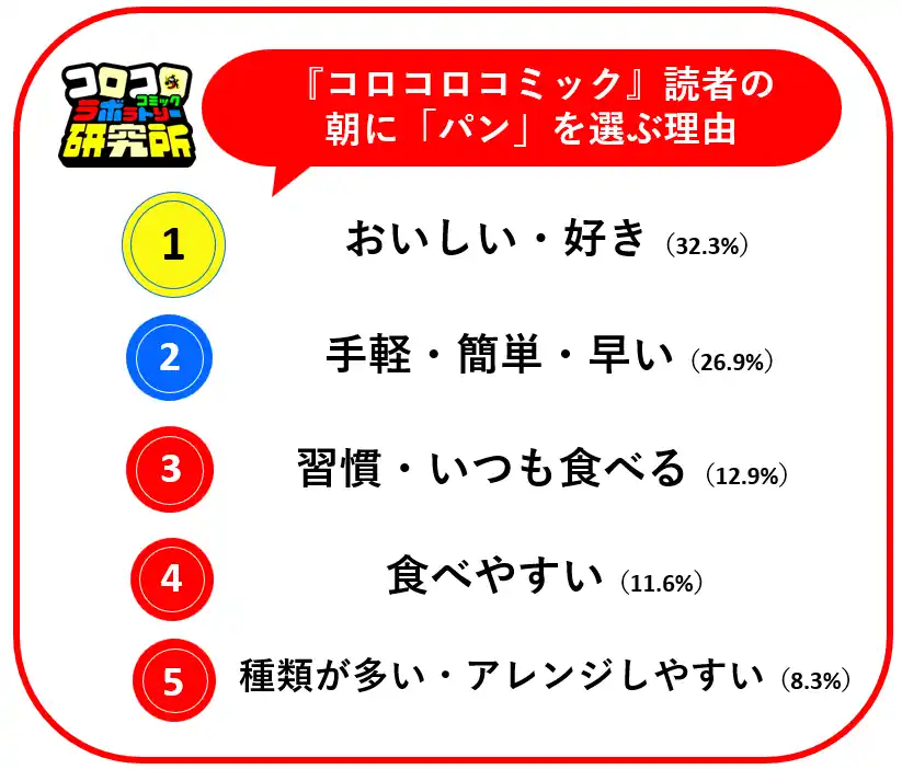 『コロコロコミック研究所』では今回、小学生を中心とした『コロコロコミック』読者772人を対象に「食」に関するアンケート調査を実施。ごはん派とパン派どちらが多いか、食の情報源、おうちの人はあまり食べさせてくれないけれど大好きな食べ物、苦手な食べ物などについて調査した結果を、『コロコロコミック研究所』 所長・小林浩一の分析とともに紹介します。