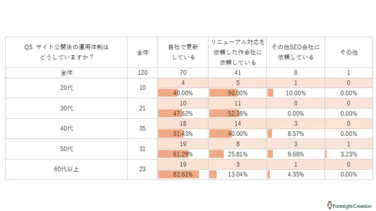 さらに、60代以上では80.0%以上が自社で運用しており、長年の体制を活かして自立した運営を行う姿勢が目立ちました。 |