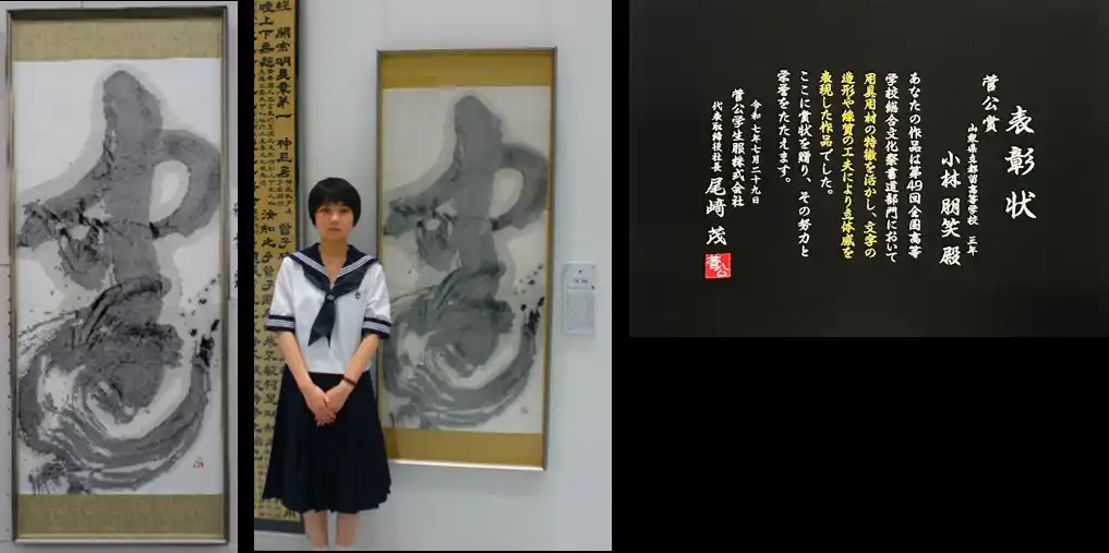 ■第49回全国高等学校総合文化祭香川大会書道部門における菅公賞受賞作品、受賞理由、受賞者のコメント |