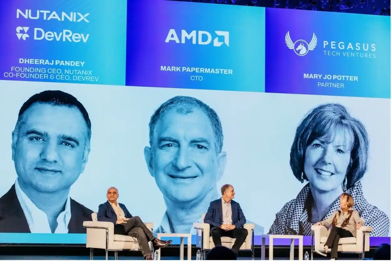 左からNUTANIX社の元創業者兼CEOのディラージ・パンディ、AMD社CTOのマーク・ペーパーマスター氏 |