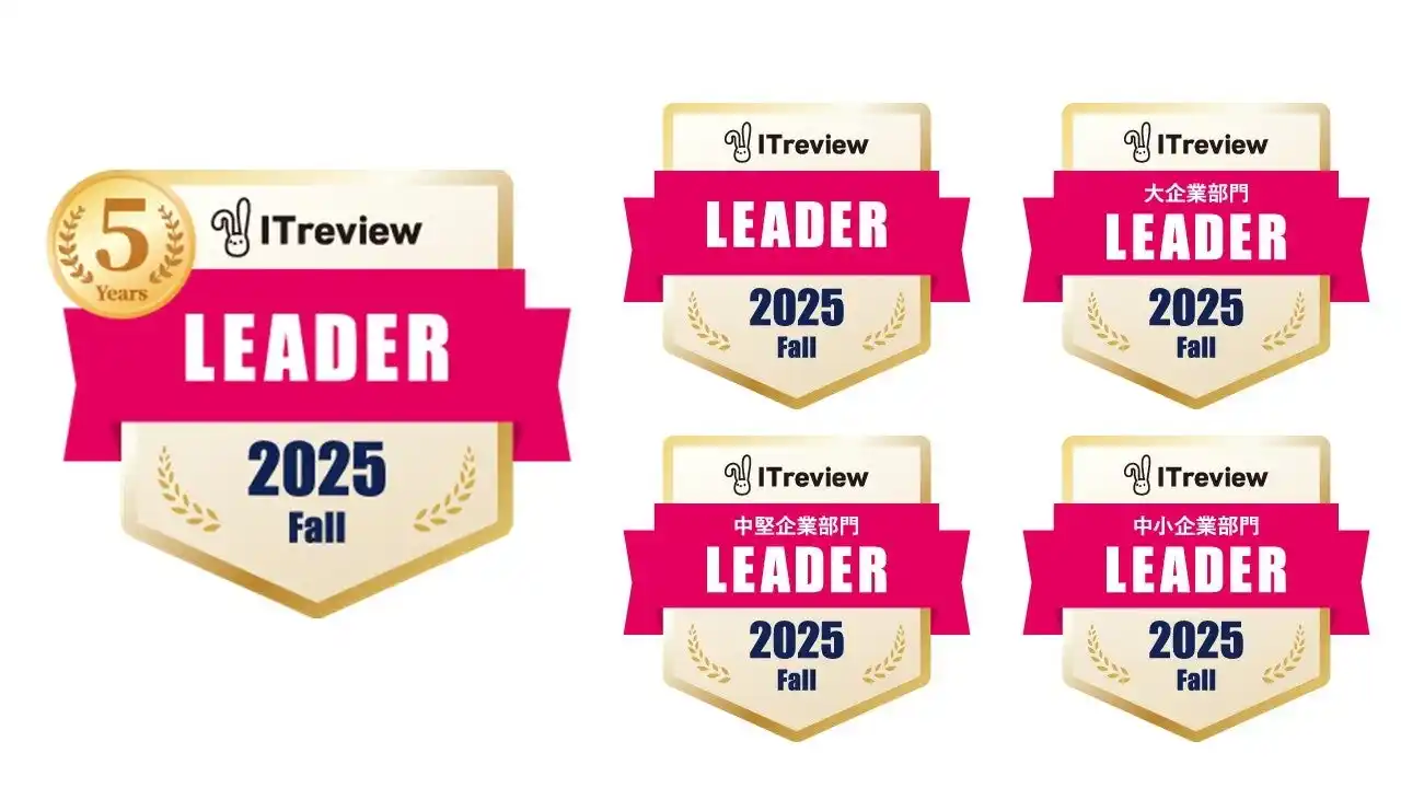 10月に発表された「ITreview Grid Award 2025 Fall」では、ITreviewに集まった約14.6万件のレビューをもとに、顧客満足度と認知度の双方が優れた製品を「Leader」として表彰、バッジが発行されています。ITreviewのLeaderは多くの利用者から支持を得ている証であり、大企業や中堅企業、中小企業といった各企業規模のユーザーから高評価だった場合にも、大企業部門のLeader、中小企業部門のLeaderなどと称号が与えられています。 |