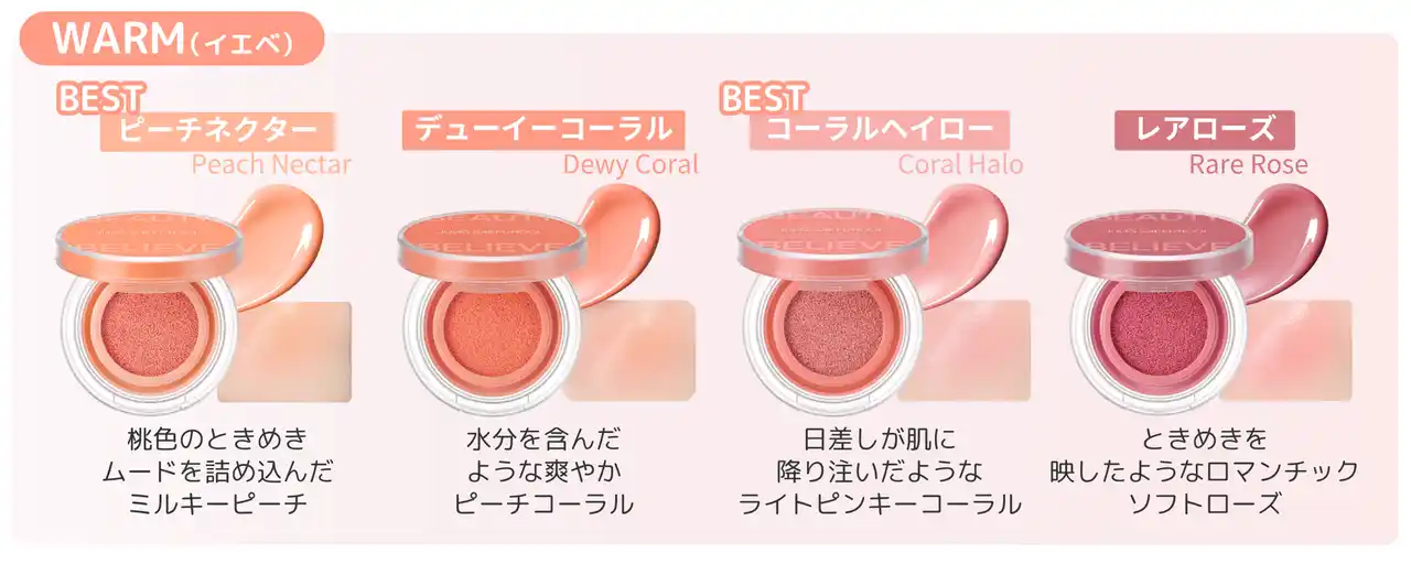 ♦ベースメイクの上からでも重ねやすく、叩くほどにツヤと血色感が溢れる |