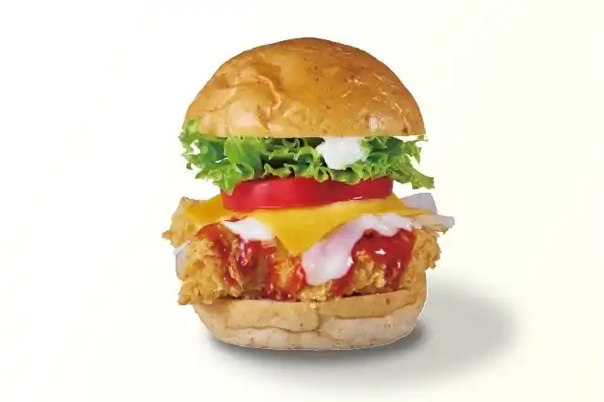 甘辛ヤンニョムソースと美幌峠牧場チーズソース×チェダーチーズを合わせた「ヤンニョムチーズバーガー」は、チーズの塩味とまろやかさがチキンと絶妙にマッチし、ひと口ごとに旨味のハーモニーが広がります。 |