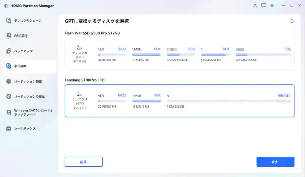 データを保持したまま安全に変換したい場合は、本記事でご紹介した「4DDiG Partition Manager」がとても便利です。