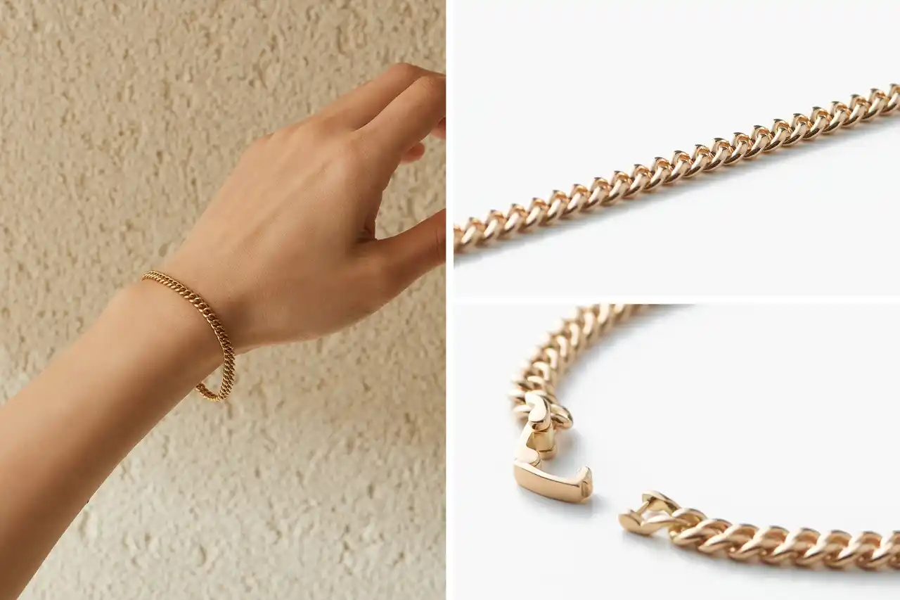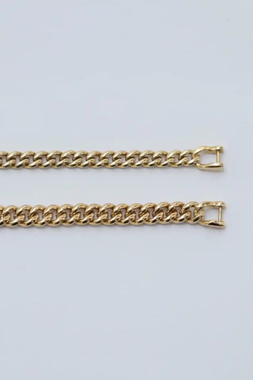 時計やリングとの調和を意識した絶妙な重さとバランスが、手元に心地よく馴染みます。仕上げは光を反射するポリッシュと、静かに艶めくサテンの2タイプ。 “繋がり”や“永続”を象徴するゴールドチェーンが、現代の感性の中で静かに輝きを放ちます。 |