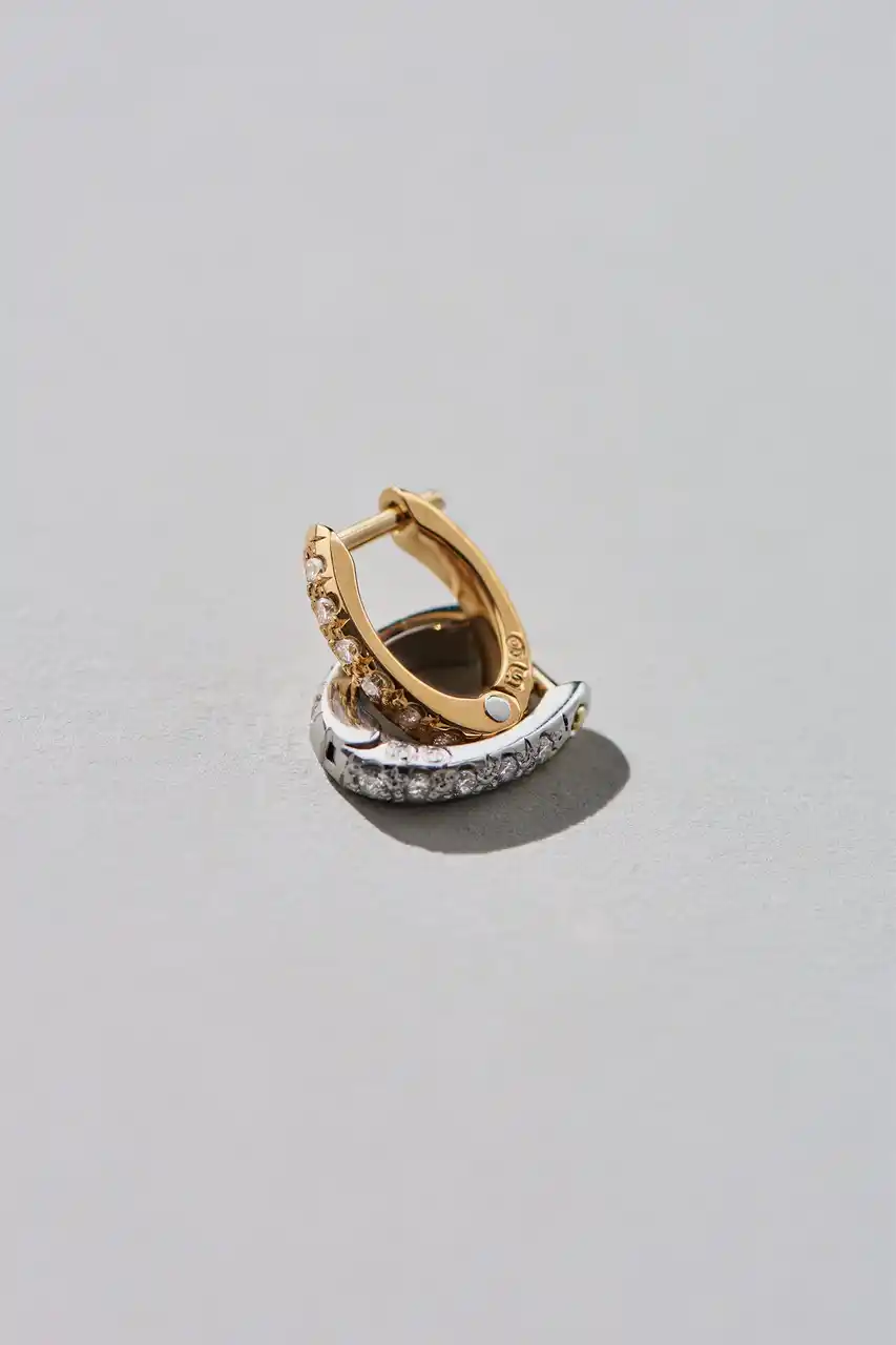 | 18Kイエローゴールドとプラチナの2素材展開。ダイヤモンドの有無を含む全4モデルは、片耳販売のため、アシンメトリーな組み合わせも自在です。 | |||