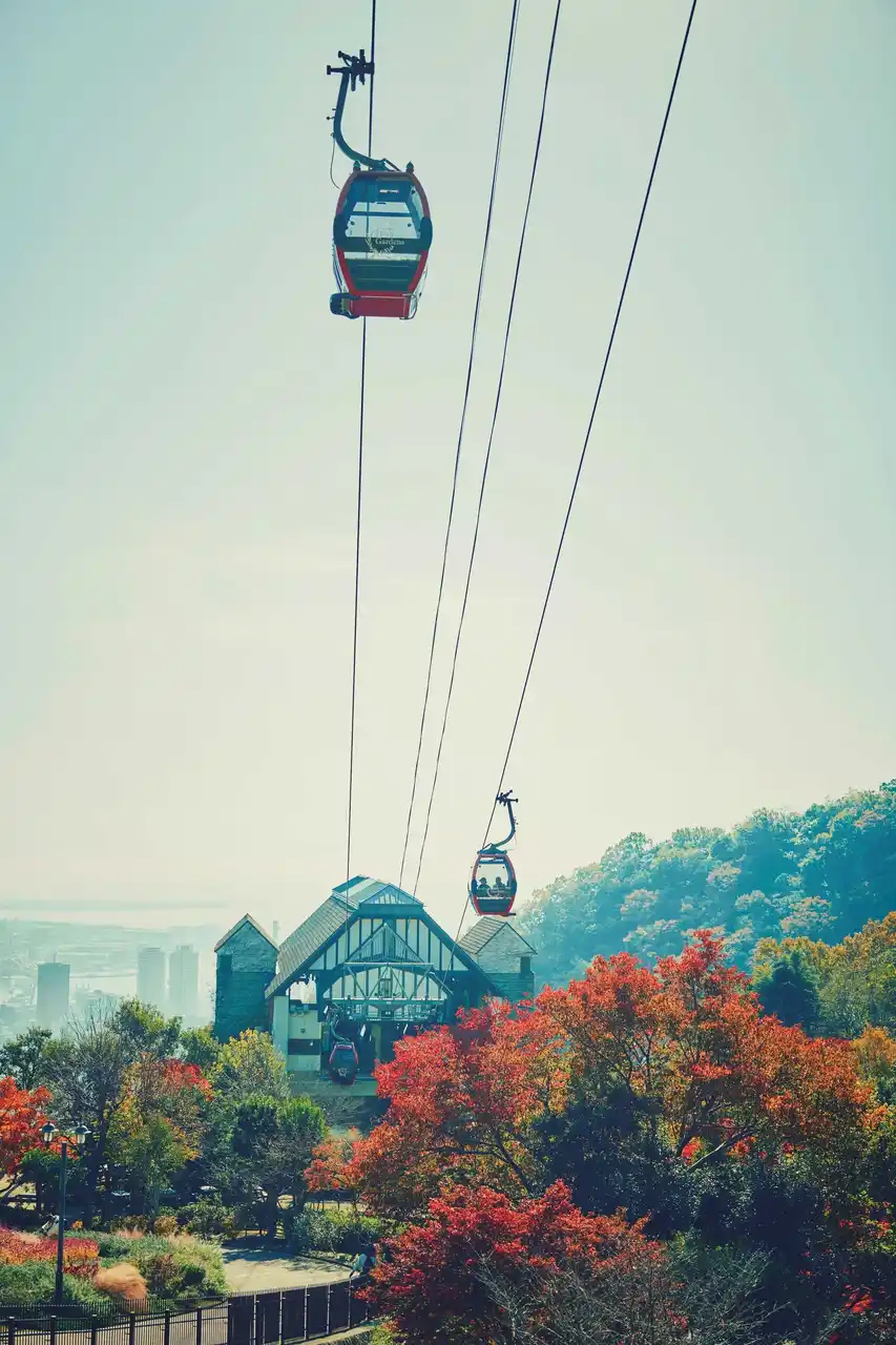 神戸布引ハーブ園は、紅、オレンジ、黄色に色づく紅葉とともに、可憐に彩るハーブや花々を同時に鑑賞することができる神戸随一の紅葉の名所です。ロープウェイや展望プラザ(標高約400m)、ガーデン各所、風の丘芝生広場(標高約250m)で紅葉越しの美しい神戸の街並みが望めるのも神戸布引ハーブ園ならでは。様々な色合いが美しく織りなす情景を目に、優雅な秋の散策をお楽しみください |