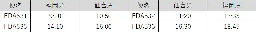 FDA 新路線『福岡=仙台』『福岡=花巻』線の運航開始について