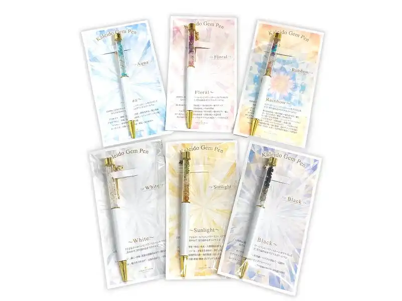 ハワイ発の天然石アクセサリーブランド「Malulani Hawaii(マルラニハワイ)」表参道店では、天然石をガラスに閉じ込めたオリジナルボールペン「Kaleido Gem Pen」を発売開始いたしました。 黒インク仕様で、全6種類のデザインをご用意しています。 |