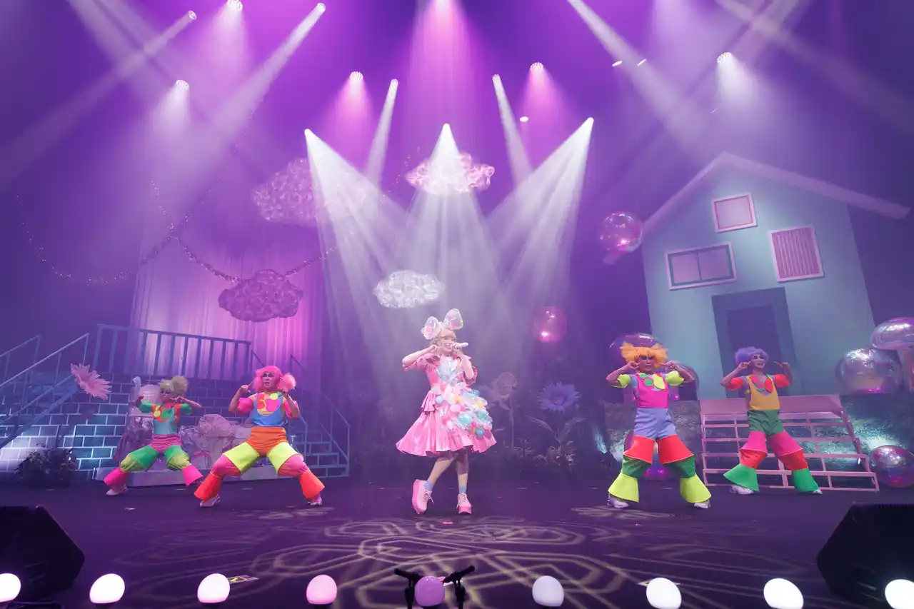 カバー曲を披露し、「こんばんはー、きゃりーぱみゅぱみゅです!今日はみんな最後まで楽しんでね!」と、満面の笑顔でファンと再会に喜びを見せるきゃりー。そんな多幸感に包まれるなか、頭の中の感情を表現したキャラクターたちが登場し「コスメティックコースター」を披露。さらに、きゃりーの代表曲「つけまつける」をパフォーマンスすると、会場の熱気が一気に上がる。「キズナミ」では、ファンたちと一緒に手を上げ、久々のライブとは思えないほどの一体感が生まれていた。 |