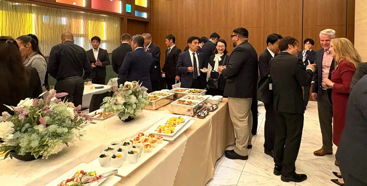 初日、訪問団は大阪・関西万博(Expo 2025 Osaka)へ。最先端の展示と国際色豊かな来場者の熱量に包まれて、議論の糸口は自然と「スマートシティ」へとほどけていく。夜、大阪市内のホテルに場所を移すと、府内約20名の市長らが迎えるレセプションが始まった。カリフォルニアと関西が交わるテーブルでは、地域の課題、将来像、そして次の一手が具体的な言葉で交わされる。 |
