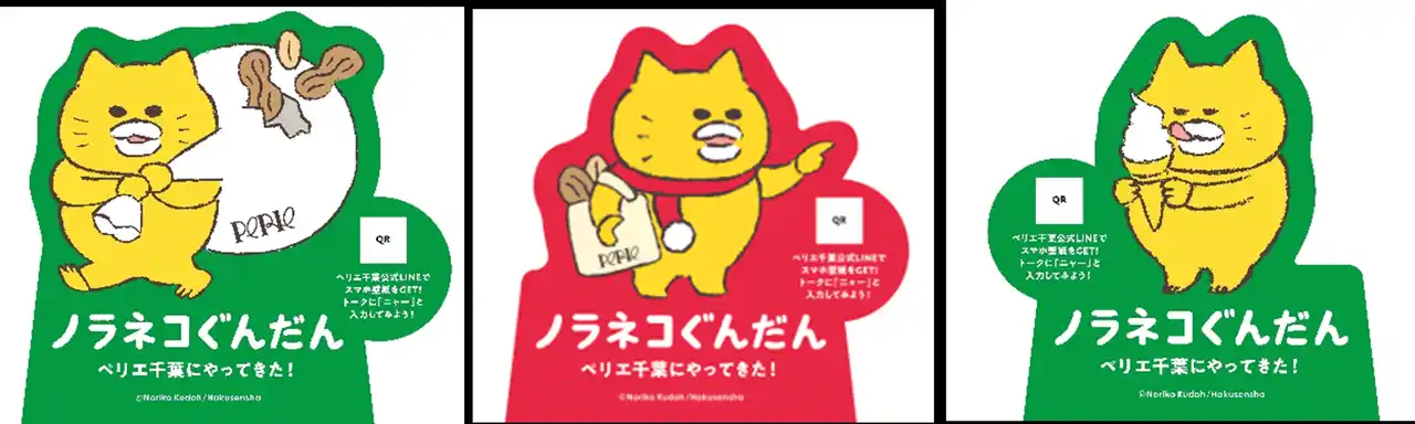・内容:期間中、ペリエ千葉公式LINEに友だち追加いただき、トーク画面にキーワード「ニャーニャー」を入力すると「ノラネコぐんだん」オリジナル壁紙を無料でプレゼントします |