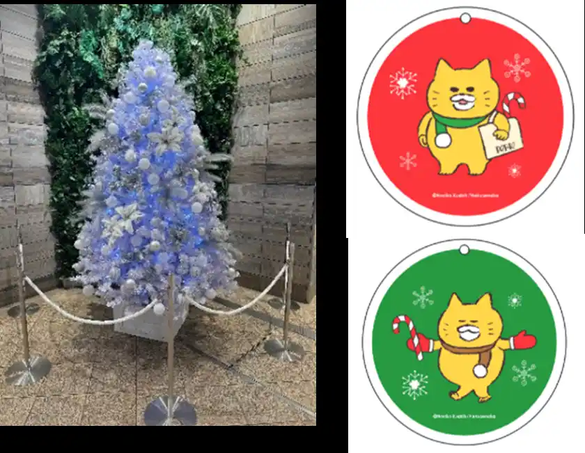 また、館内5箇所に設置されるクリスマスツリーには、オリジナルデザインのオーナメント全8種類を装飾。館内には「ノラネコぐんだん」と一緒にクリスマスの記念撮影ができるフォトスポットも設置しており、館内いたるところでお楽しみいただけます。 |