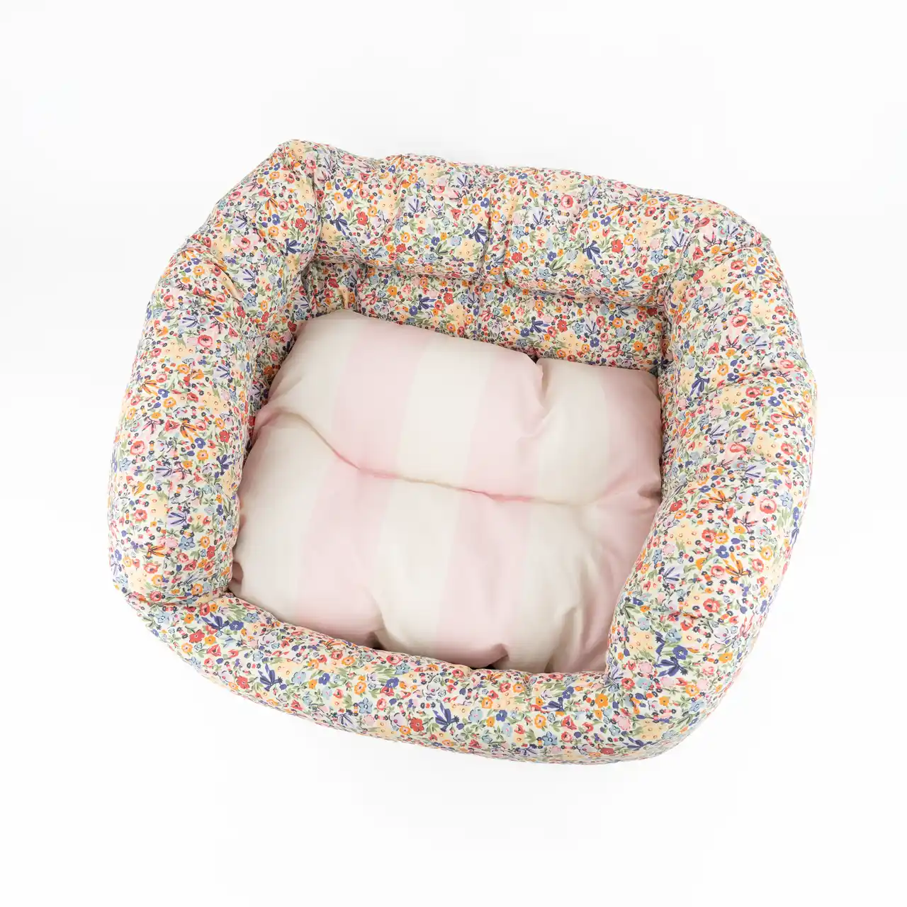 愛犬・愛猫が安らげるペットベッドは、大人気のHarmony Ditsy柄。お部屋に馴染みやすいスクエア型(カドラー型)で、置き場所を選びません。また、中のクッションは取り外しができ、手洗いも可能なので、いつでも清潔に保てます。底面には滑り止め付き。お部屋に置くだけでインテリアを華やかに彩ります。 |