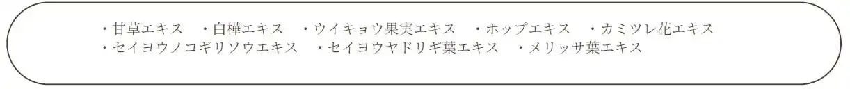 | 甘草エキスや白樺エキスをはじめとする厳選された植物エキス(保湿)を配合。 | ||||||||||||||