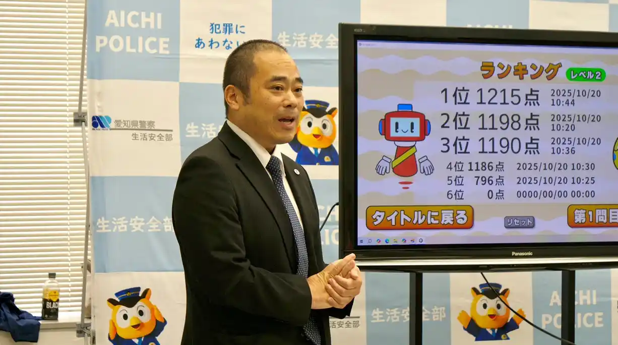 イベント冒頭、株式会社スピードの岩木勇一郎氏からは、「エンターテインメントのノウハウとデジタルの技術を用いて、どんなことでもおもしろくをモットーに、楽しんでいたらリハビリになった、自然と運動していた、学びに繋がるゲームになるよう開発しました」とコメントがあり、愛知県警察本部 生活安全総務課 渋谷塁氏からは、特殊詐欺についての現状と、知識を身につけることがいかに大切かの説明がありました。 |