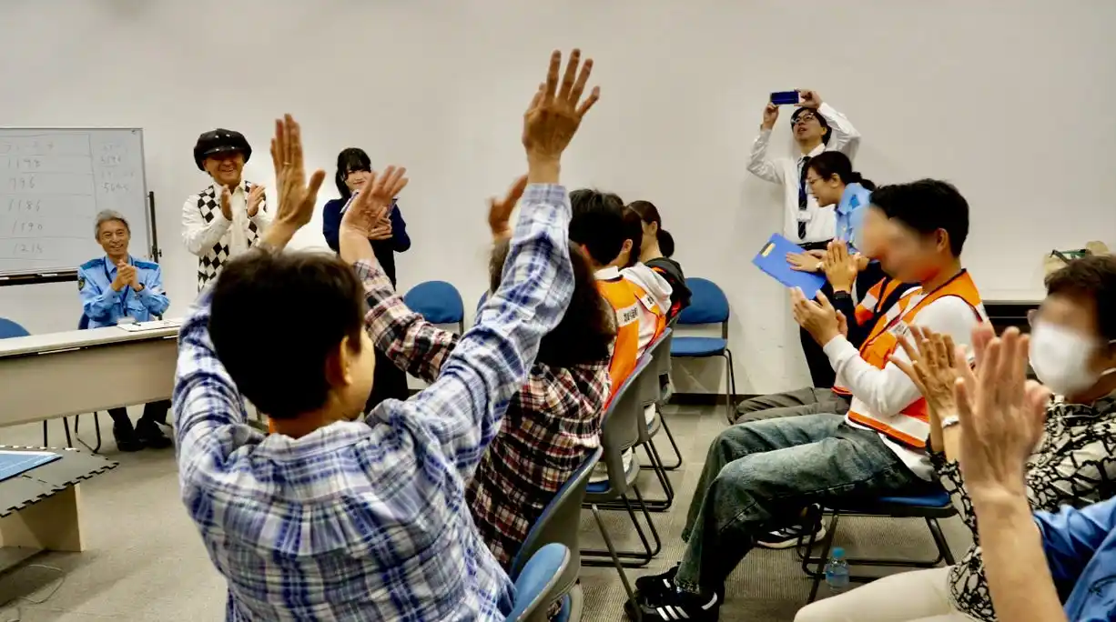 本ゲームはプレイヤーが専用シートに座った状態でクイズに挑戦します。重心を左右に傾けることで(難易度調整も可能)、○×を選択して回答、素早く回答することで多くの得点を獲得することができます!今回は愛知県警察による、特殊詐欺クイズを実装し、防犯ボランティア団体「アイチレディース4豊明支部」と、大学生防犯ボランティア「APP(あいちパトロールピーポー)」が、5対5のチーム対抗戦を行い、合計得点で競い、特殊詐欺に関する知識を得ました。「よっこいチョイス」は、クイズに集中する中で、自然に、座った姿勢で左右に身体を傾けて姿勢を保つ、いわゆるバランス運動となり、リハビリテーションにも活かせるコンテンツです。 |
