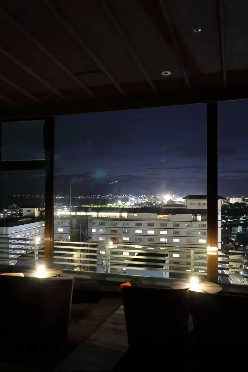 2025年10月10日(金)より、13階「SKY SALON BOUKYOU」では、期間限定で「夜景ラウンジ」として営業を開始。ライトを最小限におさえ、街並みのライトがより綺麗に映える仕掛けを施しております。 |