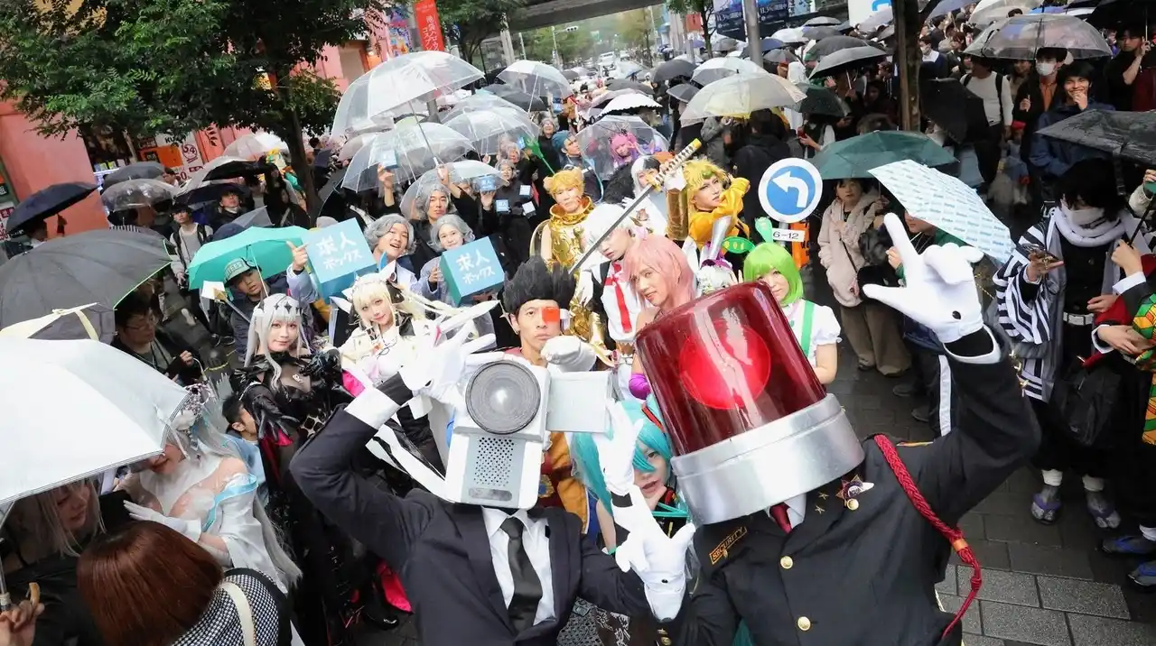 その後、イベントの目玉で、約400名のコスプレイヤーによるパレードが開催され、サンシャイン60通りからHareza池袋前までのルートを、マーチングバンドの生演奏とともにコスプレイヤーたちが練り歩きました。池袋の街を華やかに彩る圧巻の光景に、雨天にもかかわらず両脇に集まった多くのギャラリーからは歓声があがりました。 |