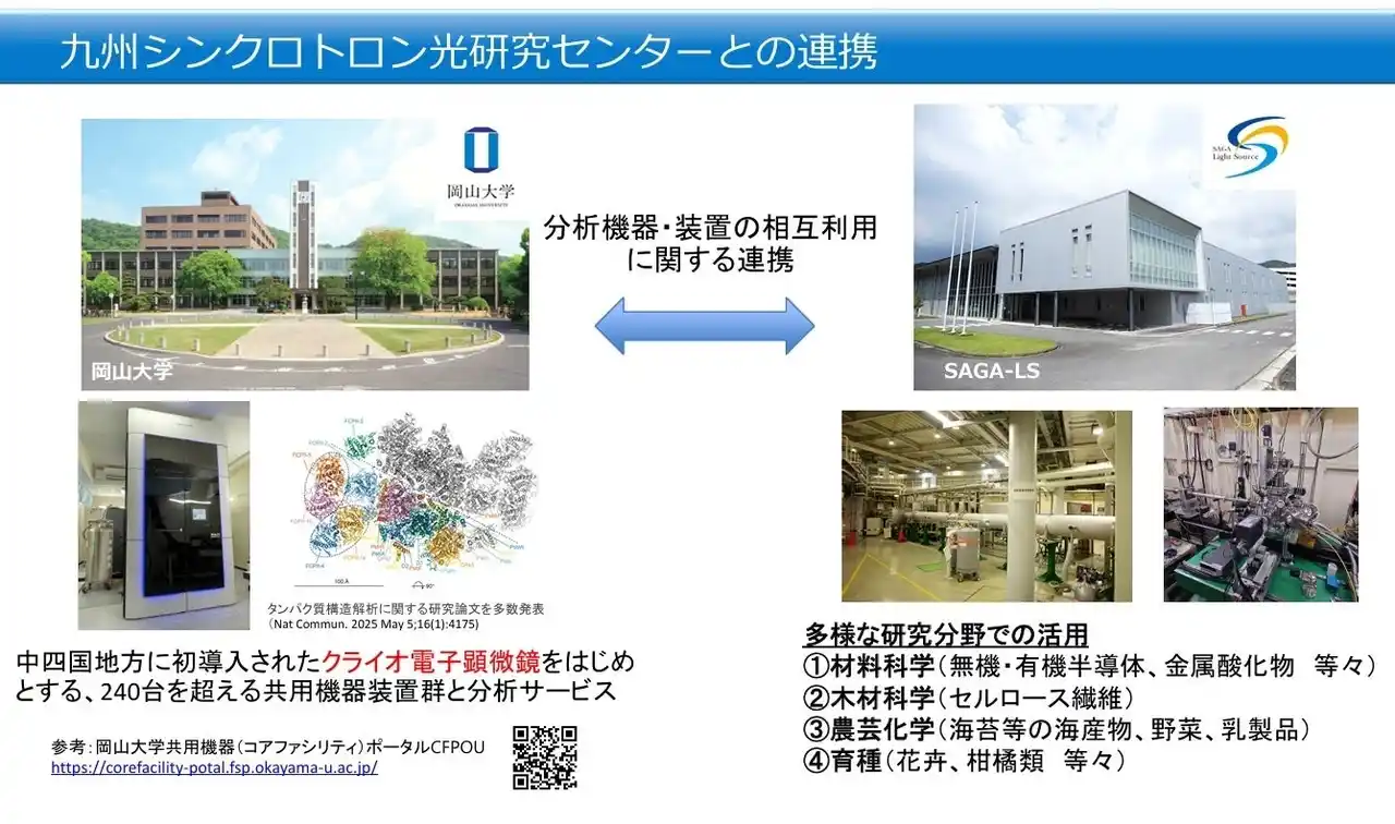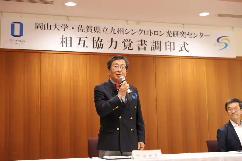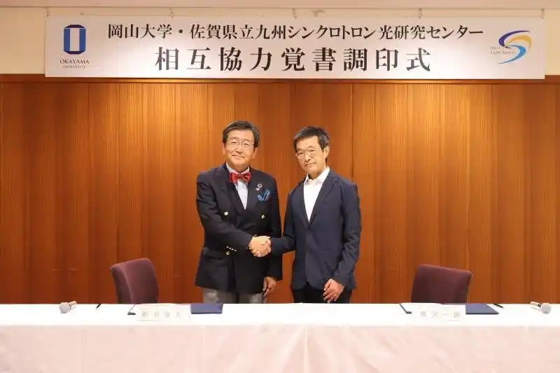 | 国立大学法人岡山大学(本部:岡山市北区、学長:那須保友)は、2025年は8月1日、公益財団法人佐賀県産業振興機構九州シンクロトロン光研究センター(SAGA-LS)と施設の相互利用をはじめとする連携を推進するための相互協力に関する覚書を、本学津島キャンパスの本部棟で締結しました。 | ||||