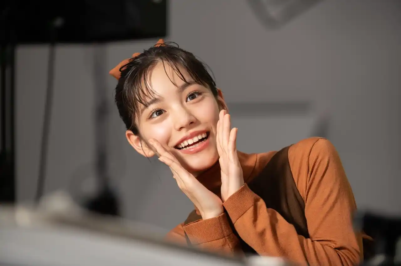 チョコをイメージしたチョコレートカラーの可愛らしい衣装で登場した當真さん。「濃厚チョコブラウニー」を味わいついつい言葉が出てしまうシーンでは、チョコの濃厚さに驚きながらも、思わず笑みがこぼれるような喜びに満ちた演技を披露。思わずスタッフたちから「可愛い」という声も漏れていました。可愛らしい衣装に身を包んだ當真さんの真っすぐな演技は、濃厚チョコブラウニーのおいしさと幸せ感を見事に表現し、現場全体を魅了しました。 |