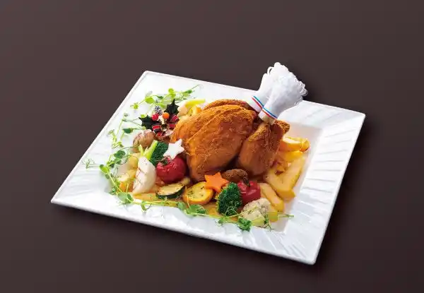 食卓を華やかに演出するローストチキン ※写真は盛り付け例です。 |