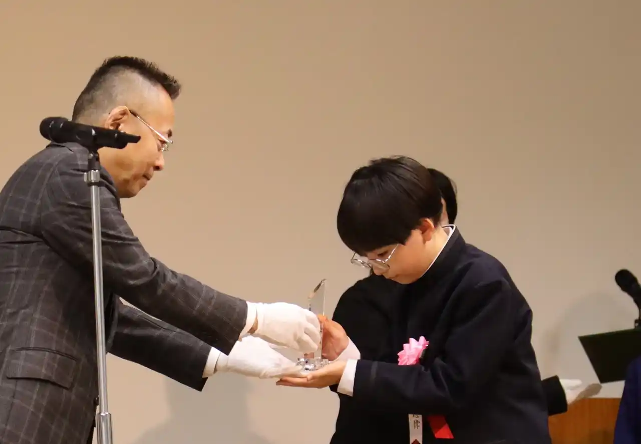 表彰式には、国内の年代別6部門で大賞・優秀賞に選出された10名が全国各地から家族とともに来場。賞状と記念品を受け取り、晴れやかな笑顔で記念写真に臨みました。入賞作品は、山田養蜂場のホームページからご覧いただけます。 |