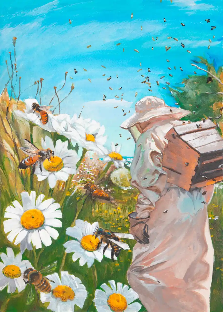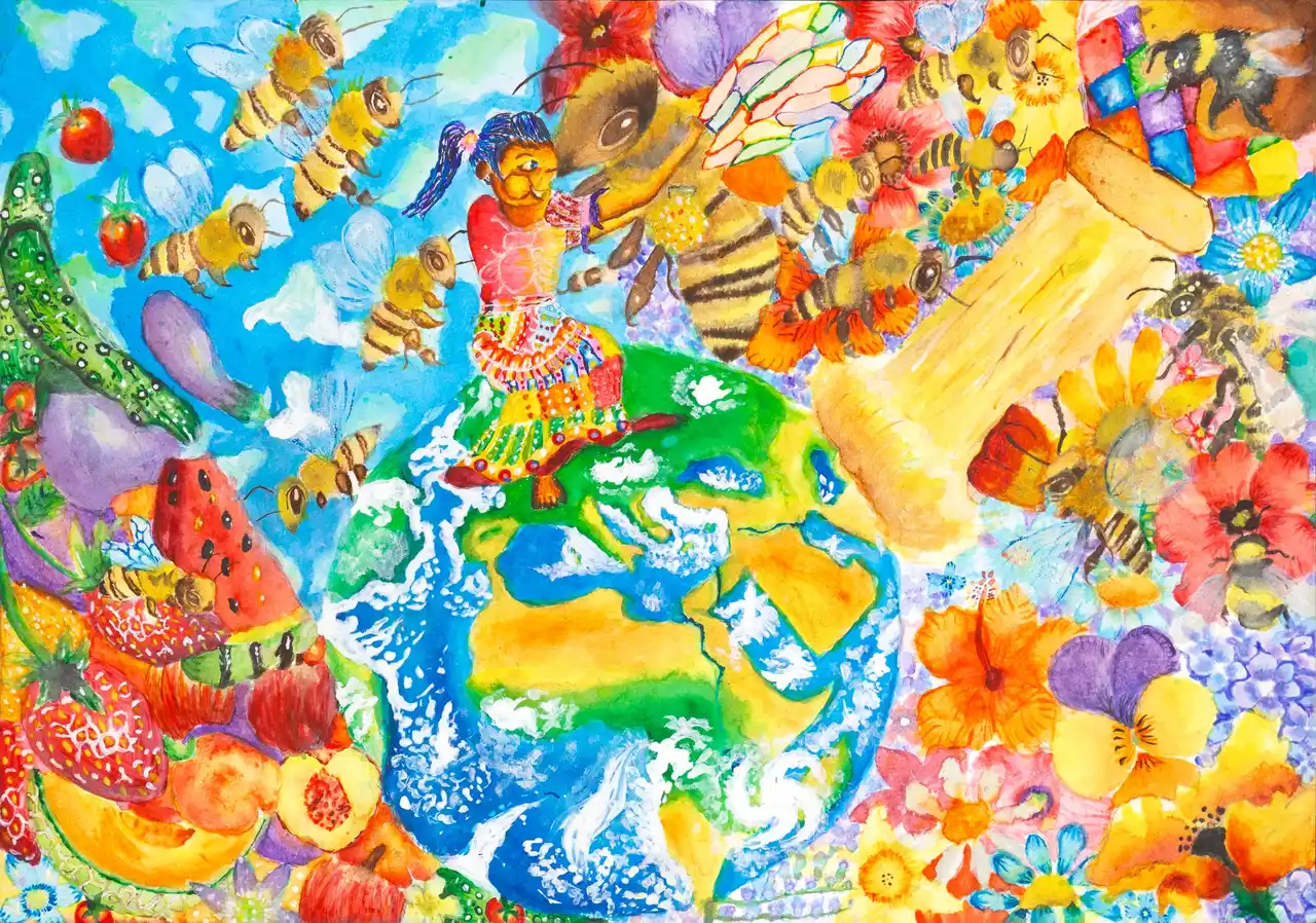 ◇17歳以下の部:Navinu Yasmith Gardiye Punchihewa(イギリス・10歳)「Honeybees: The Guardians of Our Planet」 |