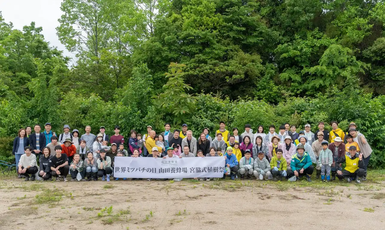 ▲2025年度は、前年度・第12回「ミツバチ一の枚画コンクール」への応募作品数21,973本を含む41,931本の植樹を実施しています。(2025年10月現在) |