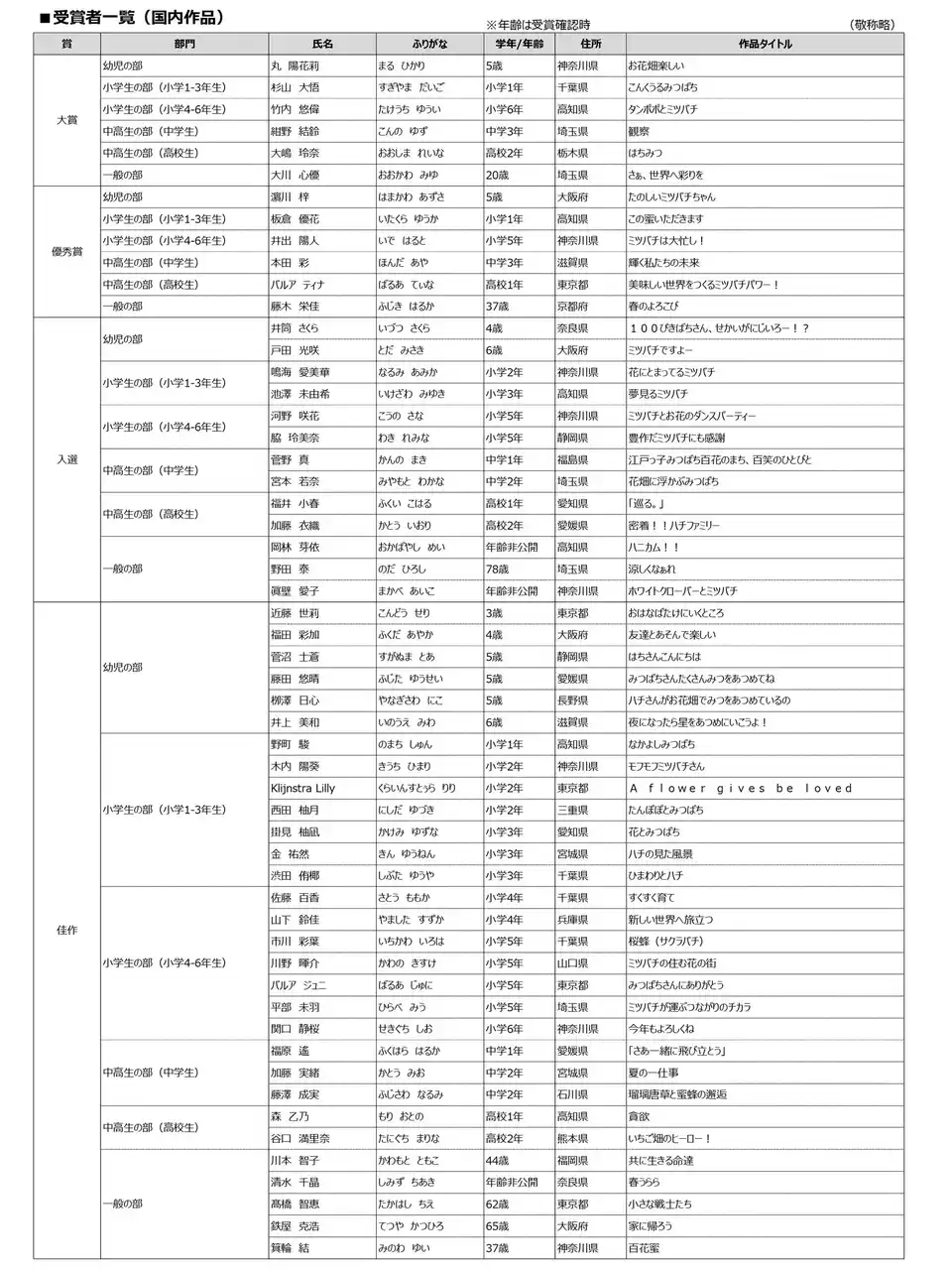 「ミツバチの一枚画コンクール」 https://www.3838.com/ichimaiga