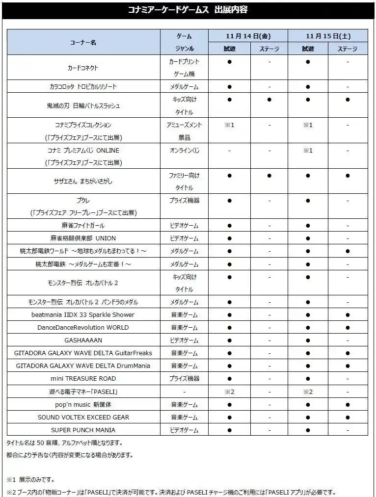 株式会社コナミアーケードゲームスは、11月14日(金)および11月15日(土)に開催される「AMUSEMENT EXPO 2025(アミューズメント エキスポ ニセンニジュウゴ)※」の出展情報を更新したことをお知らせします。 |