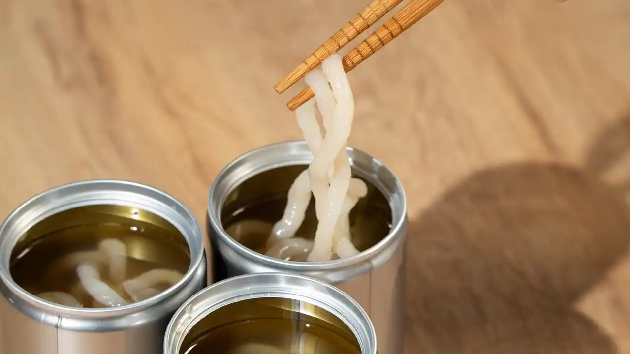 「NINZIAうどん」はこんにゃく食物繊維の食感創成技術と、不二製油の植物性技術「MIRACORE(R)」を融合。関西出汁の効いたスープがすでに入っているものの常温で長期保存しても麺が伸びにくく、うどん本来のコシと滑らかな食感を維持することに成功しました。 |