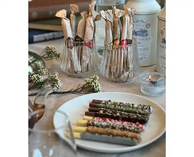 ミルクチョコレート、ビターチョコレート、ホワイトチョコレート、ストロベリーのスティックタイプのチョコレートを詰め合わせました。 |