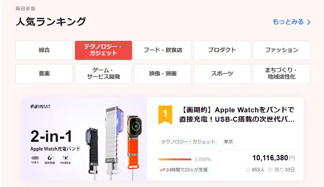 10月28日(火)、皆様の熱いご支援のおかげで、本プロジェクト公開からわずか18日間で目標金額の5,000%を超え、1,000万円の関門を突破いたしました!CAMPFIREのテクノロジー・ガジェットカテゴリランキングで1位という嬉しい結果となりました!