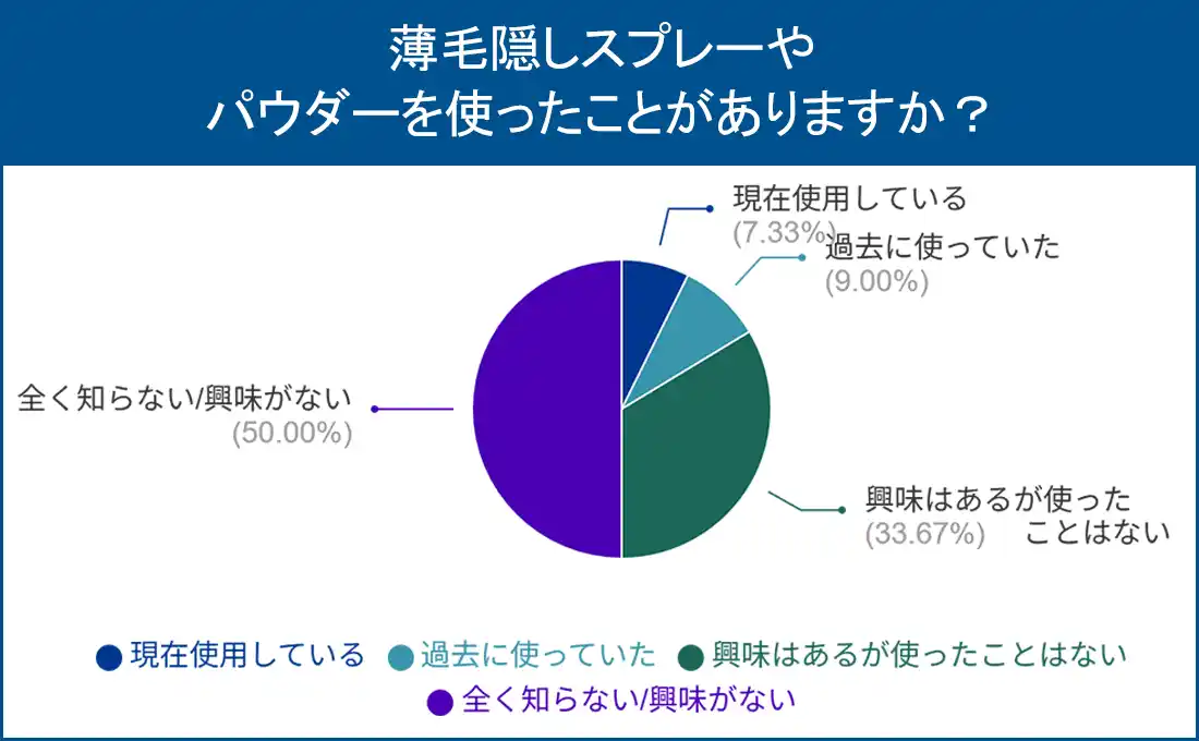 先ほどの薄毛対策アンケートでもわかった通り、薄毛を「隠すこと」が目的のアイテムというのはまだまだ認知が低いようです。 |