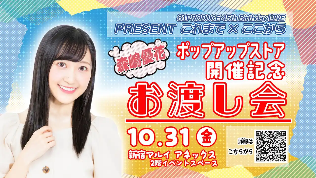さらに、10/31(金)のオープン初日は限定で、ライブ出演者の森嶋優花によるお渡し会も実施決定! |