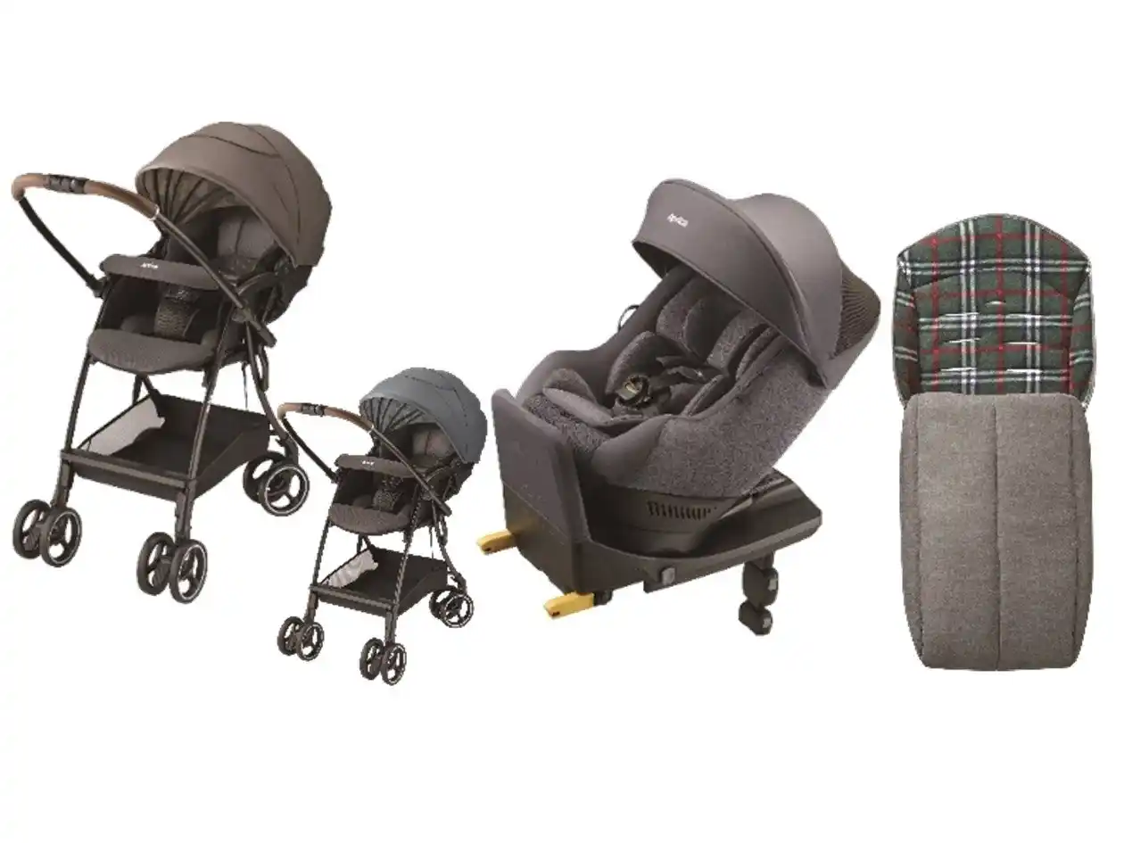 超軽量4.8kgのベビーカー「ラクーナエアープラス」は2カラーから選べます。マグネットの力で簡単装着のイージーベルトで日々の乗せおろしラクラクです。クルっと回転できるチャイルドシート「クルリラプラスライトAB」は7段階でリクライニングでき、しっかりした厚みのマシュマロGキャッチはやわらかい頭を衝撃から全力で守ってくれます。アップリカ純正のフットマフはこれからのシーズンに大活躍する、シートライナーとしても使用できる2WAYタイプです。<先着300セット限定> |