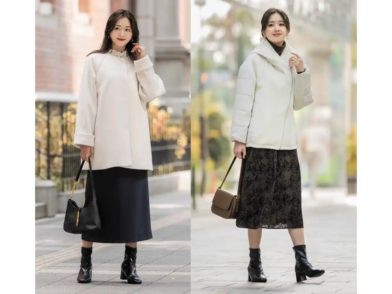 ショール衿とノーカラーの選べる2種類のウールライクコートや、異素材中綿コートをはじめ、この冬に備えるコート各種をレジにて半額でご提供 |