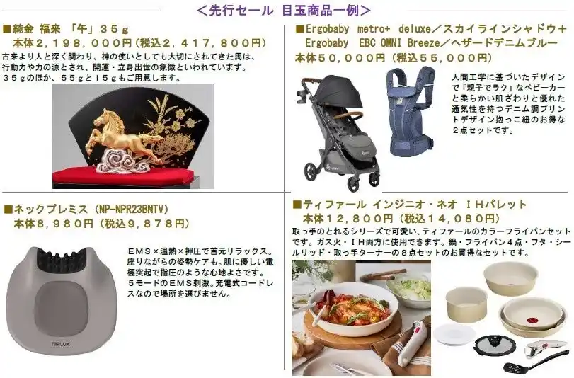 様々な超お得企画やお値打ち商品、オリジナルアイテムをご用意します。また11月20日からの店頭 セールに先駆け、オンライン購買の需要拡大にお応えするイオンスタイルオンライン先行セールや、事前予約だ からこそ提供できる、予約限定や限定価格の逸品をご用意する予約販売会も過去最大規模で開催します。 |