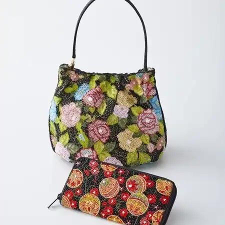 手刺しプリントビーズ2WAYハンドバッグ |