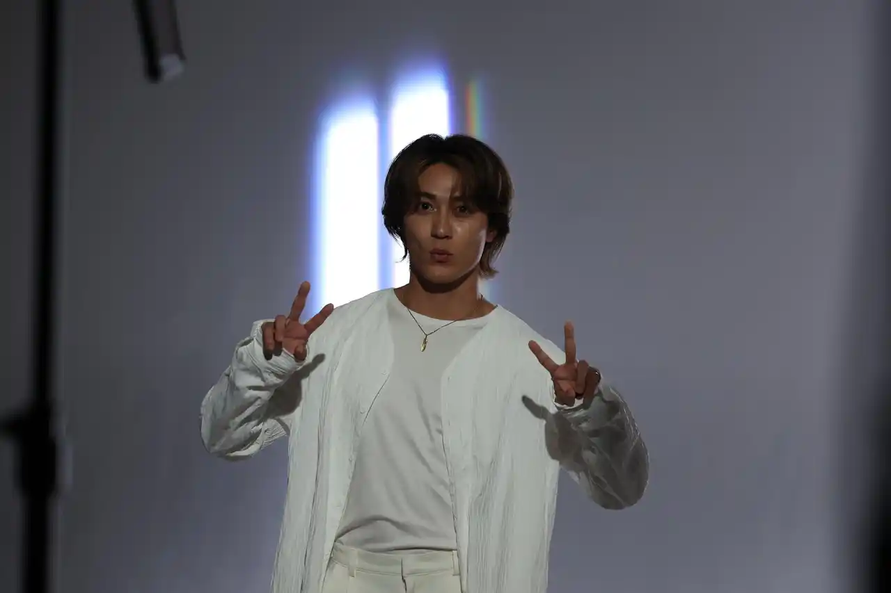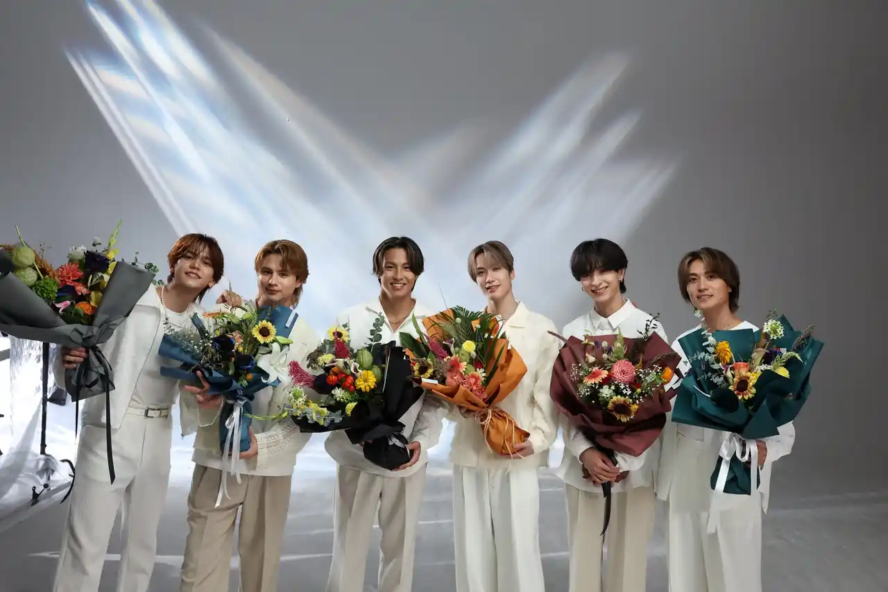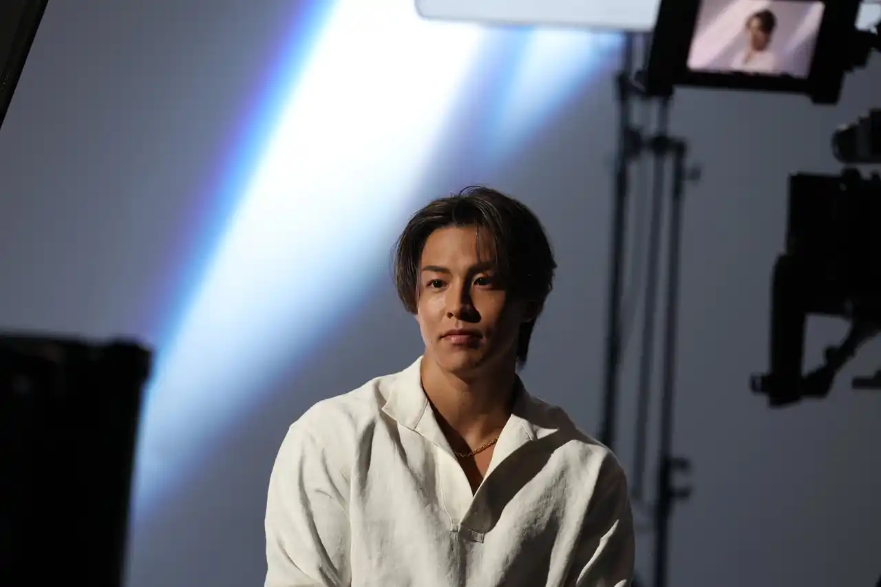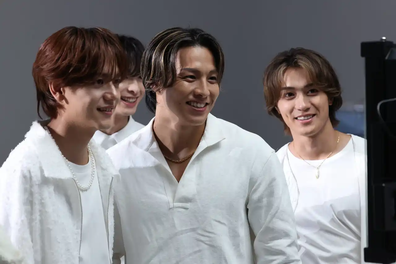 そして6人が揃う集合カットの撮影へ。中島颯太さんは「なかなか無いメンバーで皆揃ってのCMは楽しみですね」とコメントするなど、新鮮なメンバー編成にワクワクされている様子。合間には、RIKUさんが「食らえ!慧ちゃん!」とスタイルエレブラシを木村慧人さんの首元に当ててふざけるシーンも見られるなど、仲の良さが垣間見える、和やかな現場となりました。クランクアップ後にはスタッフからサプライズで花束が贈られ、温かな拍手の中で撮影は締めくくられました。 |