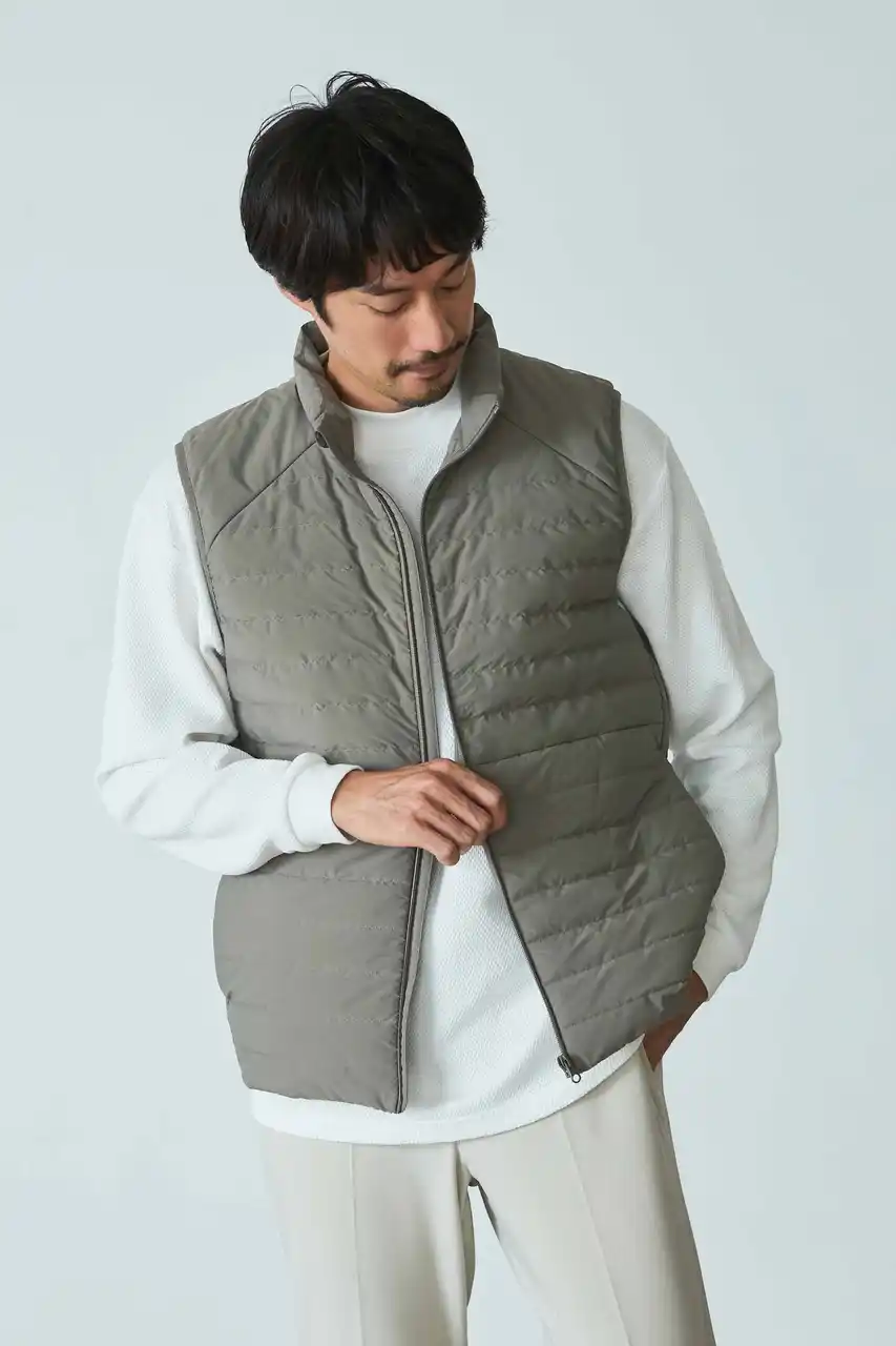 急な冷え込みに対応しつつ、機動性を損なわないアイテムとして、「BIZSPO(R)ダウンベスト」が新たにラインナップに加わりました。最大の特長は、登山用ウェアにも用いられる700フィルパワーの本格ダウンを使用している点。薄手ながら高い保温性を確保し、ビジネスシーンの防寒対策に最適です。また、ダウンの充填量を緻密に調整することで、ジャケットのインナーとして着用しても着膨れしにくいスリムなシルエットを実現。襟立ちにこだわった立体設計のスタンドカラーは、すっきり見えつつ適度なゆとりがあり、スマートな着こなしを叶えます。さらに、撥水加工とマシンウォッシャブル機能も搭載。お手入れのしやすさも兼ね備えています。 |
