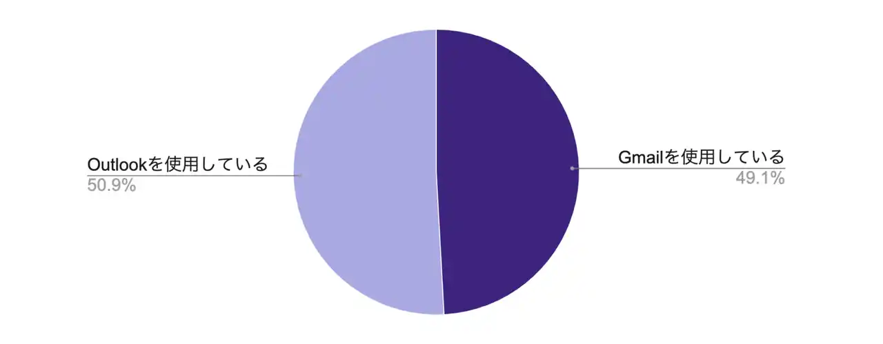 | 最初に、業務においてGmailとOutlookのどちらを主に利用しているか尋ねた結果がこちらです。 | |||