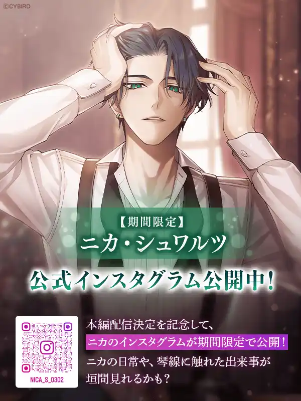 株式会社サイバード(本社:東京都渋谷区、代表取締役社長 兼 CEO 長嶋 貴之)が手掛ける、累計会員数4,500万人を誇る大人気恋愛ゲーム「イケメンシリーズ」の人気作『イケメンヴィラン 闇夜にひらく悪の恋』(以下、『イケメンヴィラン』)において、今年9月28日(日)に配信決定を発表した「ニカ・シュワルツ(CV:柿原 徹也)」の本編が、ついに本格始動することが明らかになりました。「ニカ・シュワルツ」本編のあらすじをお楽しみいただける、本編ダイジェストPVを本日公開し、各種キャンペーンを開始しました。配信は2025年秋の予定です。 |