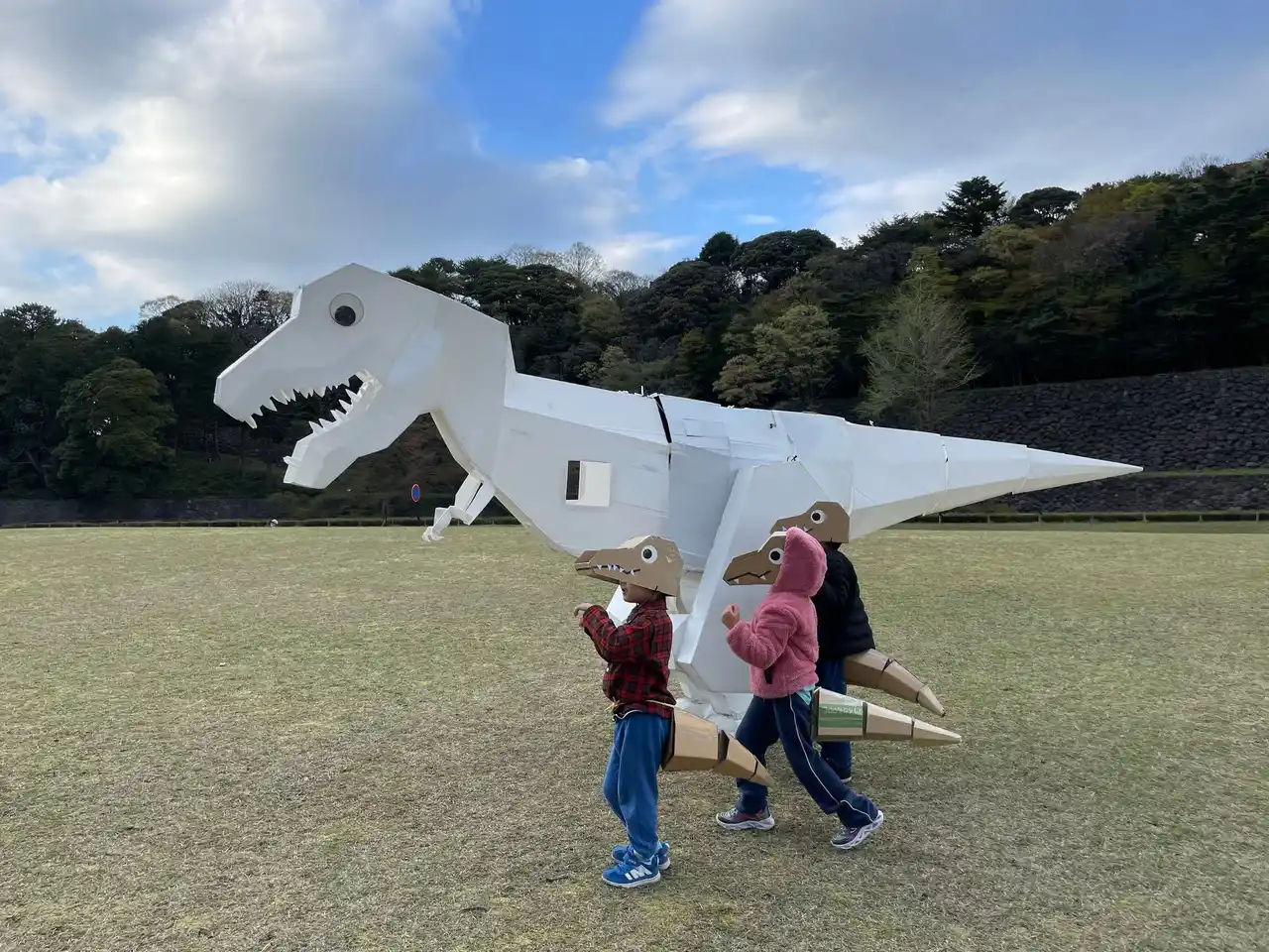 【2】ヒゲキタさんの工作ワークショップ「作って恐竜になりきろう! 巨大恐竜シロと大行進!」