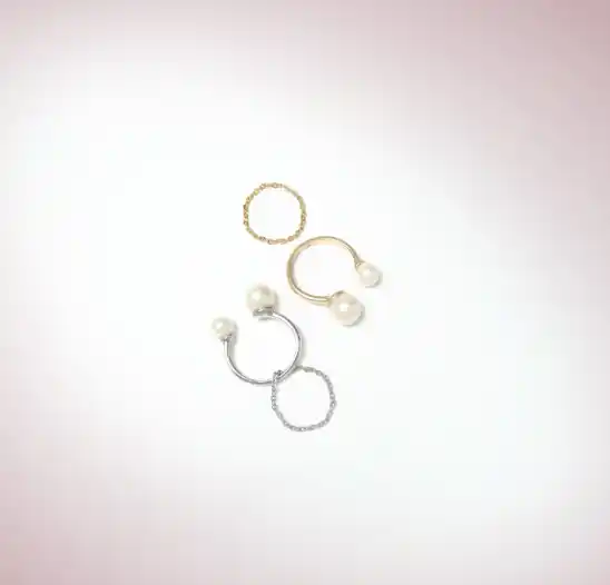 チェーンリングとパールリングの2点セット。 |